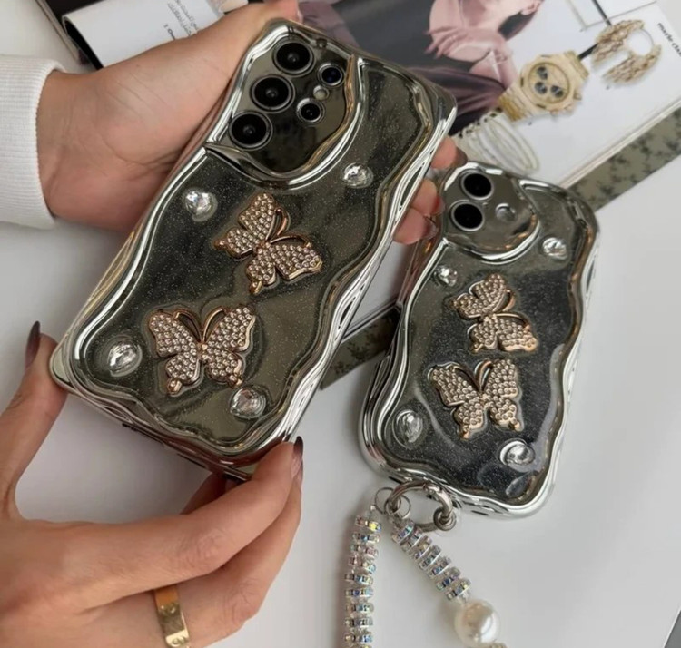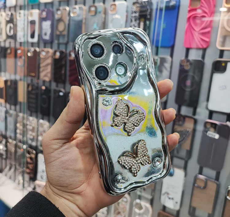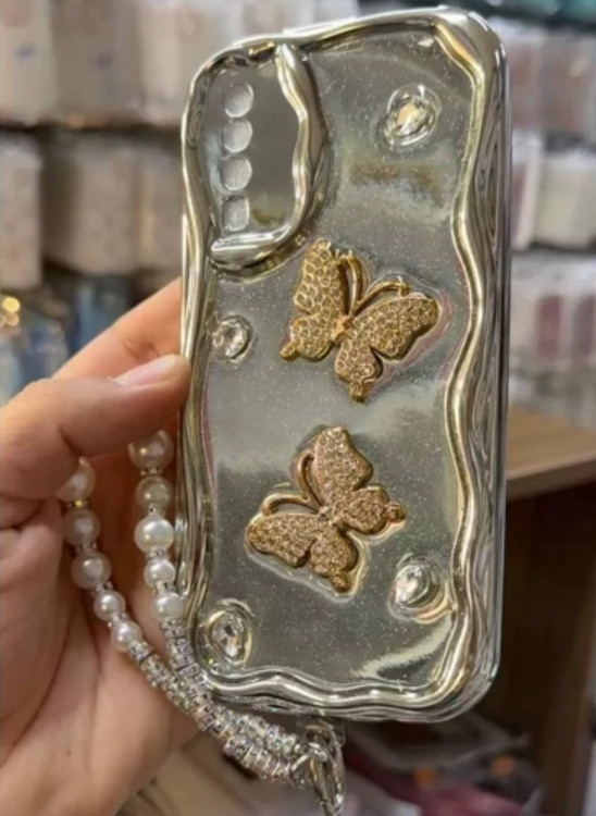 قاب کاور گارد دو پروانه طلایی الماسی نگین دار بدون بند برای گوشی آیفون۱۳ / آیفون ۱۳ / iphone13 / iphone 13