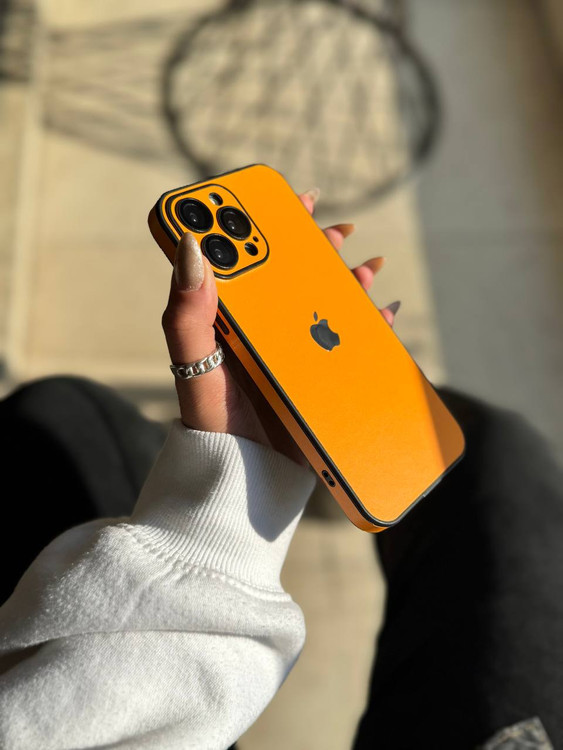 قاب کاور گارد آیفون طرح چرم لوگو فلزی اپل محافظ لنزدار رنگ نارنجی