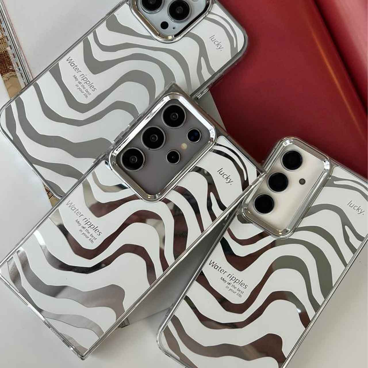 قاب موج آب آینه ای سفید آیفون۱۶پرومکس / آیفون ۱۶پرومکس / iphone16promax / 16 promax