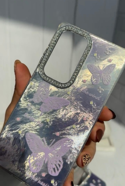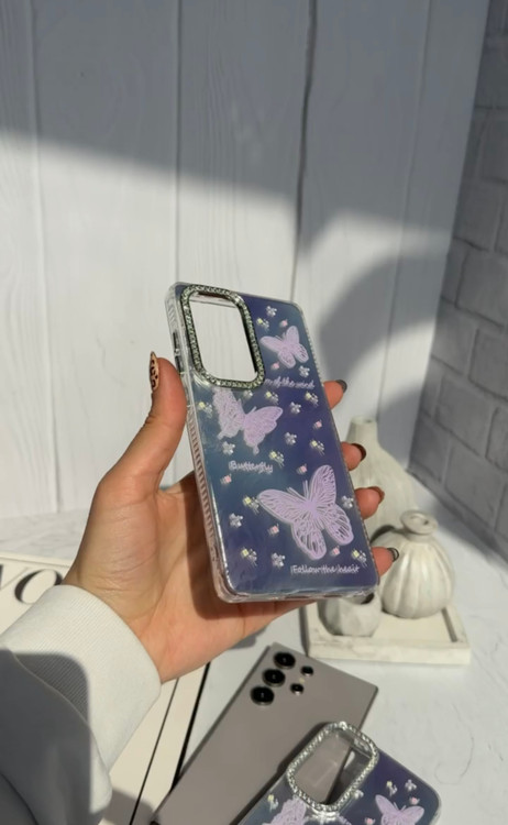 قاب کاور گارد پروانه بنفش خفن الماسی دورنگین butterfly سامسونگ اس24اف ای / s24fe / s24 fe / s 24 fe