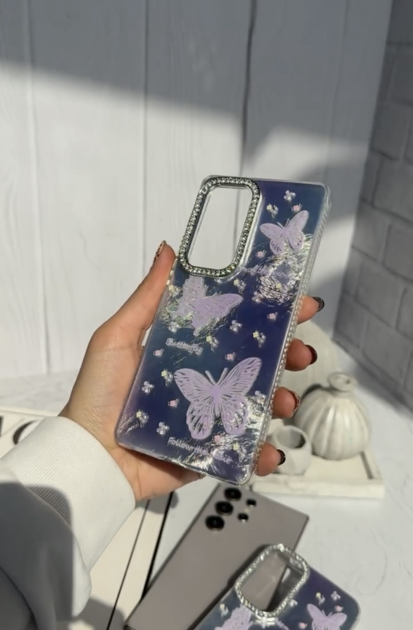 قاب کاور گارد پروانه بنفش خفن الماسی دورنگین butterfly سامسونگ اس24اف ای / s24fe / s24 fe / s 24 fe