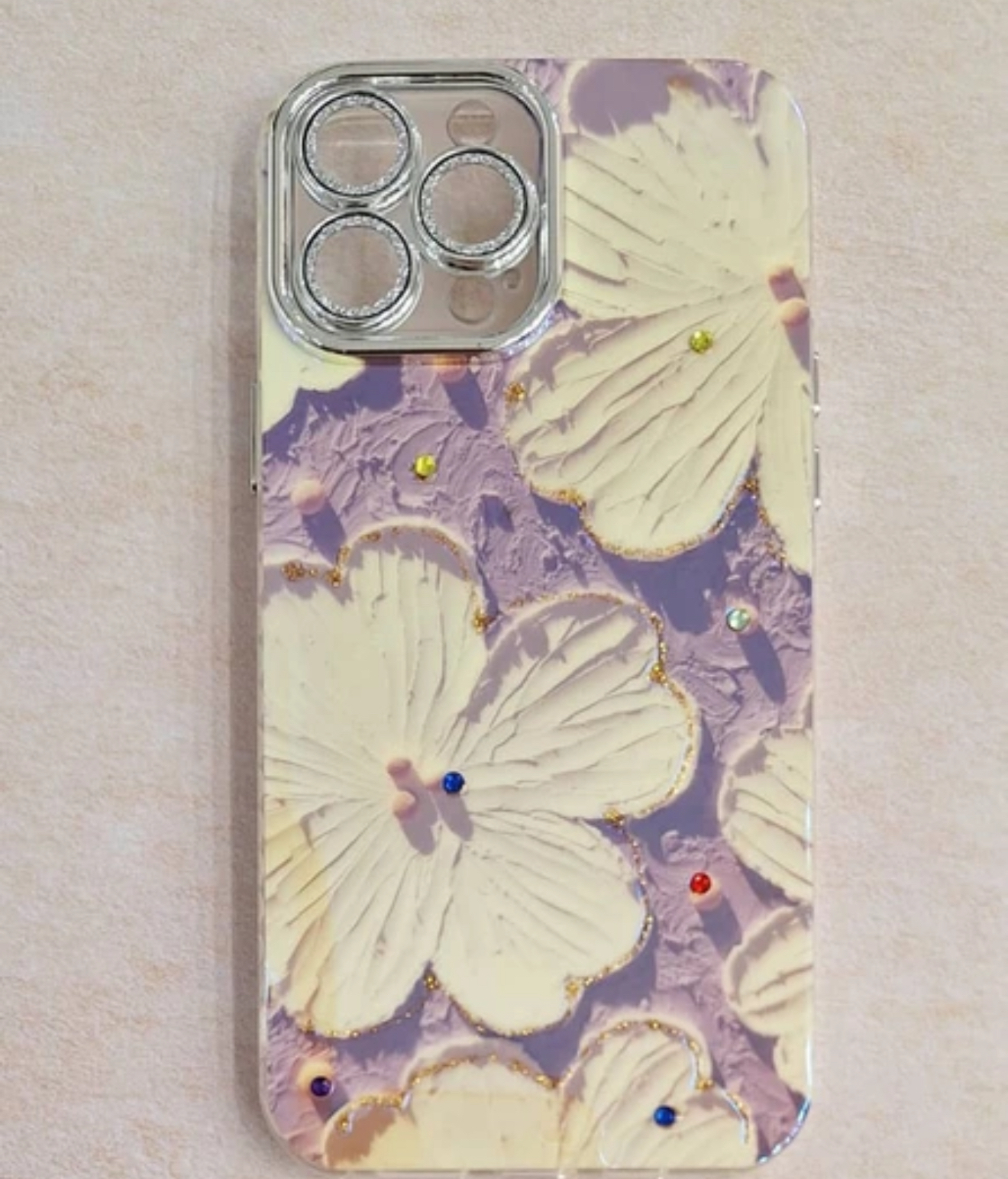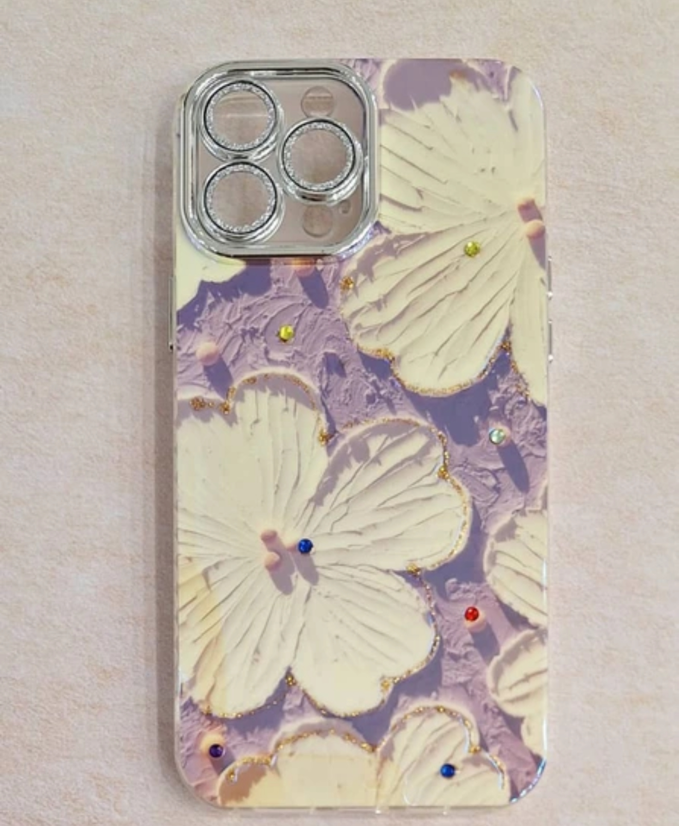 قاب گل یاسی یخی محافظ لنز شاین case flower ice آیفون۱۳پرومکس / آیفون ۱۳ پرومکس / iphone 13 promax / 13promax